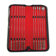 In body safe stainless steel, the 12 included Rose Bud Sounds are naturally extremely firm and quite weighty. Each probe (other than the first, which is straight and 11.5"/29.21cm long) is identical in shape and features a length of about 12 inches/30.5cm. A swell at each tip ranges in size and thickness from .04"/.1mm to 4.72"/120mm, so you or your partner will be able to choose the one that best fits your experience level and/or stimulation requirements.